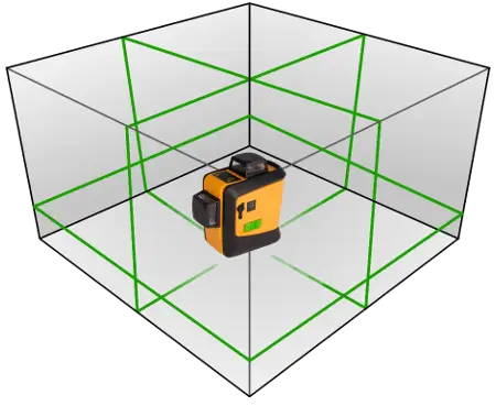 CROSS 3D est un dispositif de traçage exceptionnel affichant un corroyage complet. Trois plans, qui se croisent à angle droit sont décalés par rapport au centre du dispositif, rendant ainsi les points laser supérieur et inférieur toujours visibles (et ce, que le dispositif fonctionne sur le sol ou sur support). En bloquant le compensateur on peut ainsi déterminer des plans inclinés. Disponible en deux versions. Peut fonctionner avec le récepteur RC-9.