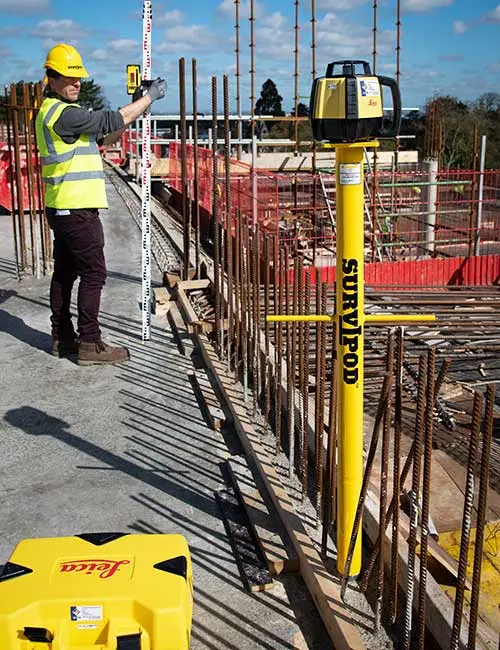 Le Survipod ™ Offset, vous permet d’utiliser le système même lorsque vous êtes trop prêt d’un obstacle (mur, …). Il permet de travailler sans pose de colonne fixé sur le plan vertical, cette solution est idéale dans les zones ou les mises en stations doivent être décalées.