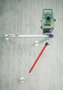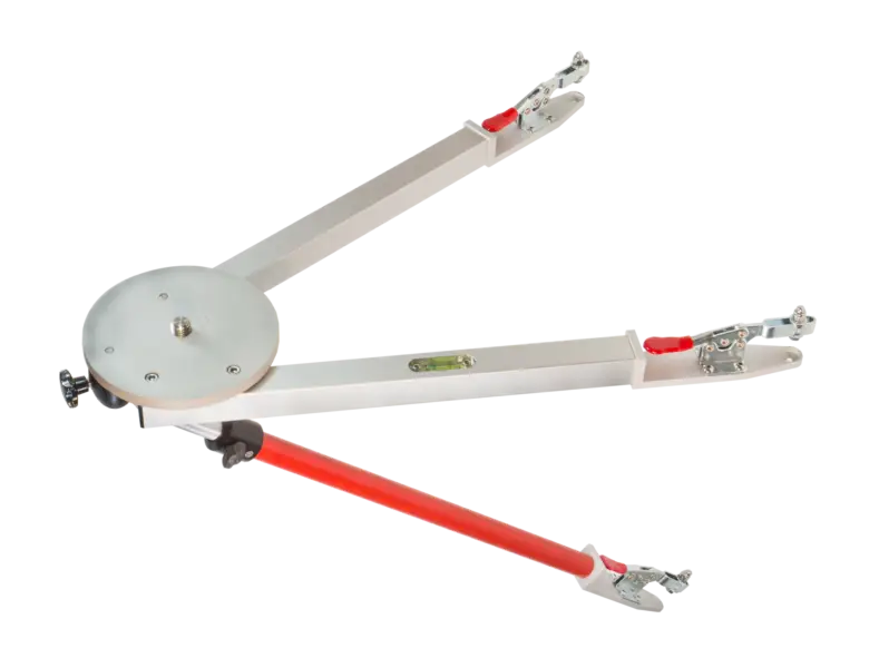 L’attelle télescopique est reliée au point du mur inférieur et soutient le trépied et permet d’aligner une bulle tubulaire intégrée dans la jambe rigide.